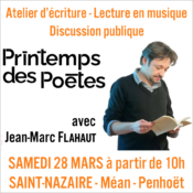 A 15h, une lecture en musique permettra d’entendre les textes écrits en ateliers ainsi que des poèmes de Jean-Marc Flahault à la ludothèque de Méan-Penhoët.