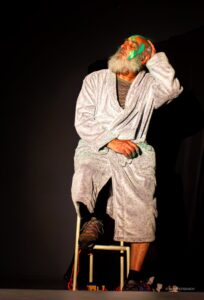J’ai découvert le travail de clown en 1979 avec Alexis Chevalier dans le cadre de l’atelier théâtre du Centre de Culture Populaire de Saint-Nazaire qu’il animait. J’ai continué d’avoir une pratique de théâtre amateur durant ma vie d’éducateur. A ma retraite, en 2010, j’ai suivi les cours d’Agnès Jobert du théâtre Lila à Nantes. C’est là où j’ai redécouvert le clown. En 2014 j’ai commencé à suivre les stages prolongés de 10 à 12 jours animés par Lidy Tayeb, ClownEssenciel (Paris). J’ai suivi ce parcours pendant trois ans et j’ai obtenu une certification de clown artistique. Et j’ai fait le constat que le clown était ma passion comme si, enfermé en moi, il m’attendait. J’ai poursuivi ce cheminement pour découvrir de nouvelles approches avec différents maîtres clowns. Merci à Hervé Langlois, de la Royal Clown Company qui m’a fait découvrir la matière du jeu clownesque, la mise en situation, traiter des obstacles, des contraintes, des obsessions. Imaginons un objet qui se trouve au loin ; on ne va pas pouvoir le toucher immédiatement, il faut s’étirer, surmonter toutes sortes d’obstacles qui ne sont pas forcément uniquement physiques. Ces contraintes nous amènent à créer quelque chose de nouveau et de plonger dans le paradoxal. Merci également Michael Egard (Les poètes se déshabillent) pour le travail sur la tragédie, l’état d’être (« c’est le vrai qui fait rire »). Je pense aussi à une formidable expérience de travail sur le mime et la pantomime avec Pavel Mandurov du Licedei Clown & Mime de Saint Petersbourg. Faire vivre un objet absent pour le rendre présent ; on crée des murs, on ouvre des portes, on attrape un livre qui se trouve évidemment sur l’étagère la plus haute ; on travaille à partir de gestes quotidiens qu’il faut dramatiser. J’ai poursuivi ce travail avec Eloi Lefébure (Les Dandys) Travail sur le clown burlesque avec Norbert Aboudarham. Et un grand merci à Véronique Thomas (Roy Hart Theatre), Vanessa Leprince et Caroline Boussard (danseuses de La Petite Pièces, qui m’accompagnent dans mon travail sur la voix et l’expression corporelle. Encore une fois un grand merci à Michael Egard, qui est mon metteur en scène et mon directeur d’acteur. Il est spécialisé dans le théâtre de rue et intervient également au Samovar. Il me faut aussi rendre hommage à Pascal Aubrun qui nous a quitté brutalement. C’est avec lui que j’ai approfondi ma recherche sur le clown de théâtre, celui qui raconte une histoire. Fernand |