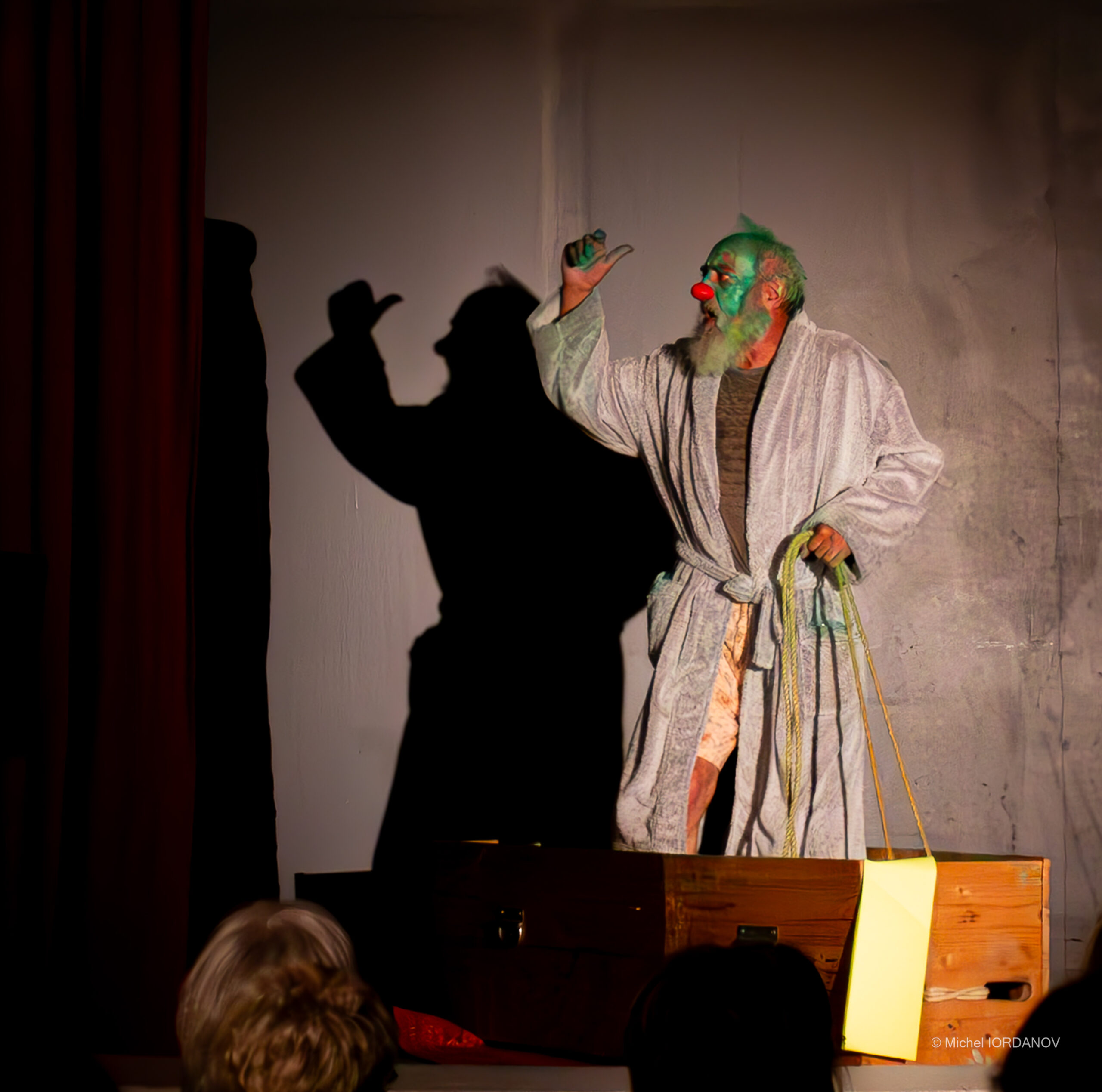 J’ai découvert le travail de clown en 1979 avec Alexis Chevalier dans le cadre de l’atelier théâtre du Centre de Culture Populaire de Saint-Nazaire qu’il animait. J’ai continué d’avoir une pratique de théâtre amateur durant ma vie d’éducateur. A ma retraite, en 2010, j’ai suivi les cours d’Agnès Jobert du théâtre Lila à Nantes. C’est là où j’ai redécouvert le clown. En 2014 j’ai commencé à suivre les stages prolongés de 10 à 12 jours animés par Lidy Tayeb, ClownEssenciel (Paris). J’ai suivi ce parcours pendant trois ans et j’ai obtenu une certification de clown artistique. Et j’ai fait le constat que le clown était ma passion comme si, enfermé en moi, il m’attendait. J’ai poursuivi ce cheminement pour découvrir de nouvelles approches avec différents maîtres clowns. Merci à Hervé Langlois, de la Royal Clown Company qui m’a fait découvrir la matière du jeu clownesque, la mise en situation, traiter des obstacles, des contraintes, des obsessions. Imaginons un objet qui se trouve au loin ; on ne va pas pouvoir le toucher immédiatement, il faut s’étirer, surmonter toutes sortes d’obstacles qui ne sont pas forcément uniquement physiques. Ces contraintes nous amènent à créer quelque chose de nouveau et de plonger dans le paradoxal. Merci également Michael Egard (Les poètes se déshabillent) pour le travail sur la tragédie, l’état d’être (« c’est le vrai qui fait rire »). Je pense aussi à une formidable expérience de travail sur le mime et la pantomime avec Pavel Mandurov du Licedei Clown & Mime de Saint Petersbourg. Faire vivre un objet absent pour le rendre présent ; on crée des murs, on ouvre des portes, on attrape un livre qui se trouve évidemment sur l’étagère la plus haute ; on travaille à partir de gestes quotidiens qu’il faut dramatiser. J’ai poursuivi ce travail avec Eloi Lefébure (Les Dandys) Travail sur le clown burlesque avec Norbert Aboudarham. Et un grand merci à Véronique Thomas (Roy Hart Theatre), Vanessa Leprince et Caroline Boussard (danseuses de La Petite Pièces, qui m’accompagnent dans mon travail sur la voix et l’expression corporelle. Encore une fois un grand merci à Michael Egard, qui est mon metteur en scène et mon directeur d’acteur. Il est spécialisé dans le théâtre de rue et intervient également au Samovar. Il me faut aussi rendre hommage à Pascal Aubrun qui nous a quitté brutalement. C’est avec lui que j’ai approfondi ma recherche sur le clown de théâtre, celui qui raconte une histoire. Fernand |