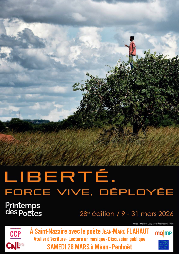 Tous les textes écrits en ateliers seront partagés lors d’une lecture en musique, ce même samedi à 15h à la ludothèque de Méan-Penhoët. Ce sera aussi l’occasion d’entendre les poèmes de Jean-Marc Flahault.