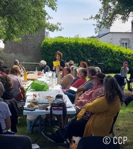 Plus de 80 personnes restées pour le pique-nique partagé après le Troc Plantes organisé par l’association A Deux Mains pour écouter les récits de travail récoltés dans le cadre du projet Travail et territoire du CCP et de la compagnie Pourquoi se lever le matin !