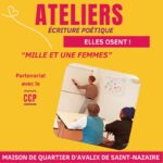 - Écrire de la poésie ? Elles osent !Dans le cadre du projet « Mille et une femmes », porté par la Maison de Quartier d’Avalix de Saint-Nazaire, le CCP anime un atelier d’écriture poétique.