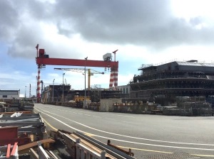 Je bute sur le port. Contourner le bassin de Penhoët dont une rangée de cafés ouvriers borde les eaux un peu glauques. S’engouffrer entre deux très longs bâtiments industriels aveugles dont la perspective semble se refermer comme un entonnoir. Ici se pressent les gens qui arrivent au boulot au même moment. Ça bouchonne. Visuellement, ce passage ressemble à un sas au-delà duquel j’entre dans une autre dimension. Pas d’erreur : j’y suis… Il faut encore se trouver une place de stationnement à proximité de la porte qui donne accès à la forme des navires en phase de finition, au bord de l’estuaire.